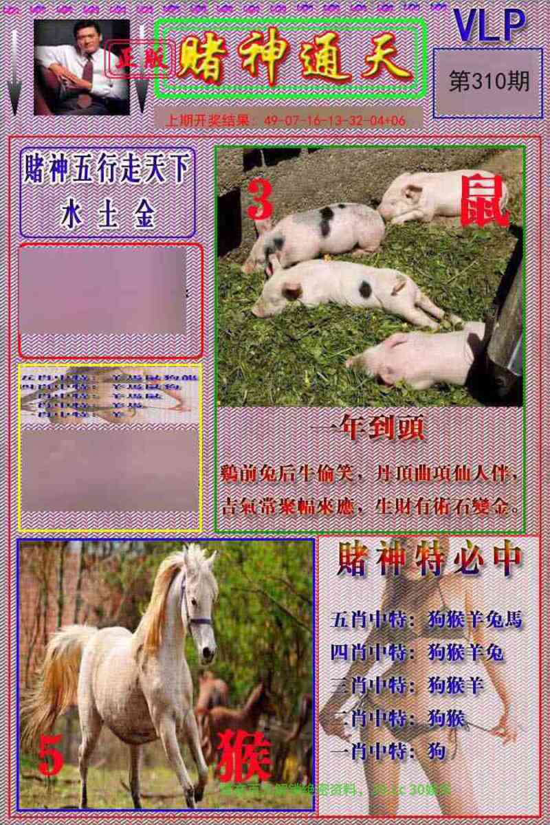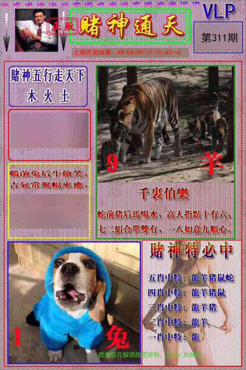 | 310期:六肖 | 虎羊猪鸡龙狗 | 开虎16准 |